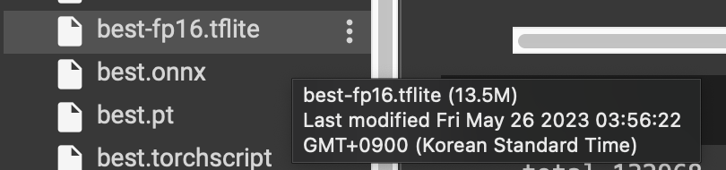 그러면... 모바일 애플리케이션에 모델을 넣고 싶으니 학습시킨 pt 모델을 tflite로 변환해봅시다