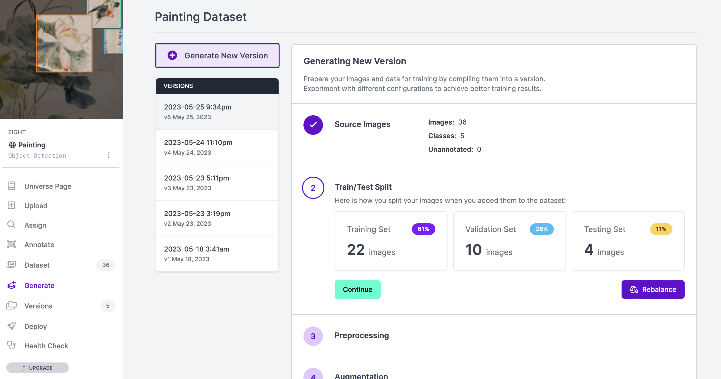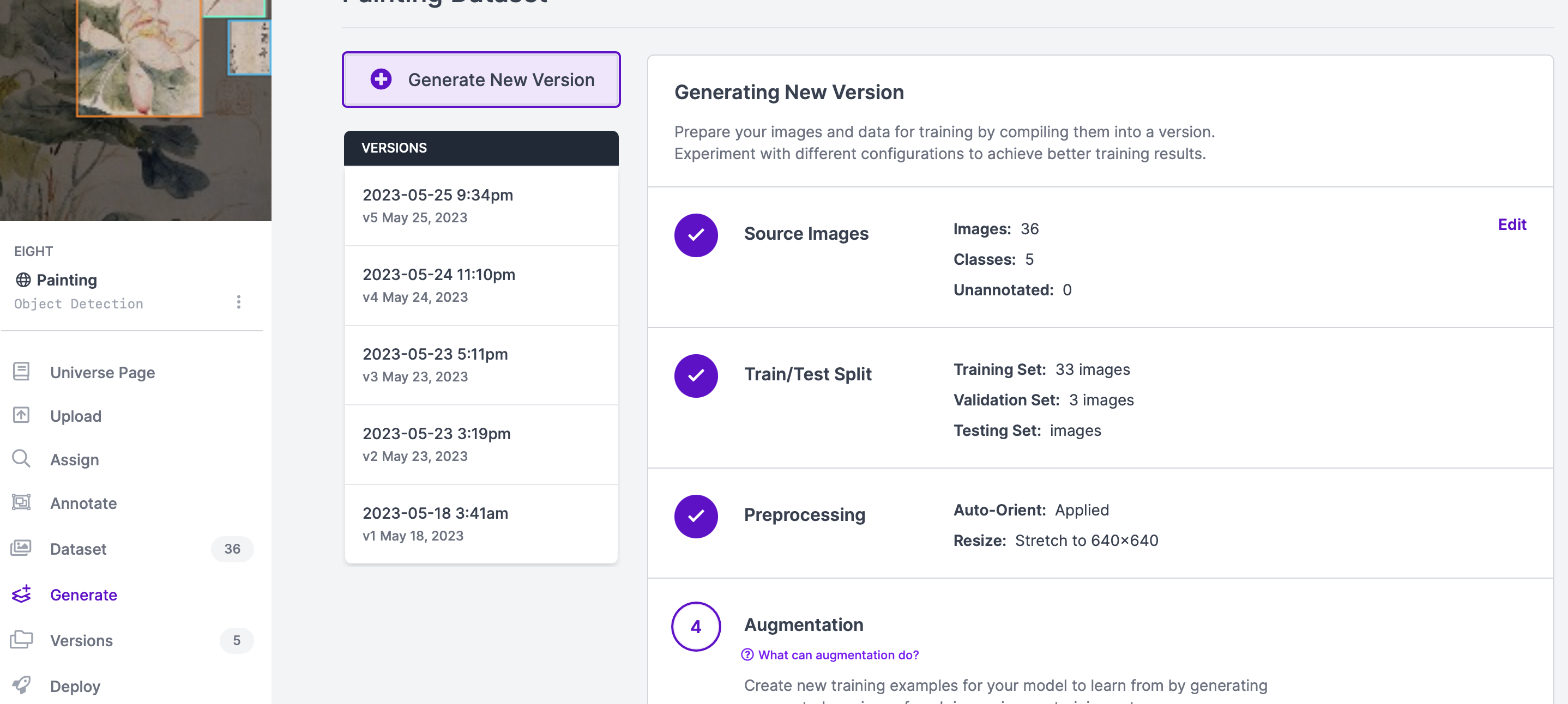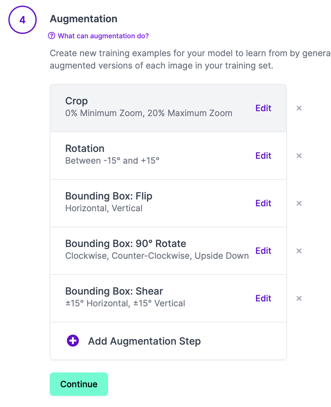 roboflow에서 Generate 탭으로 가보면 4번째 단계로 Augmentation을 지원하고 있는 걸 볼 수 있습니다.