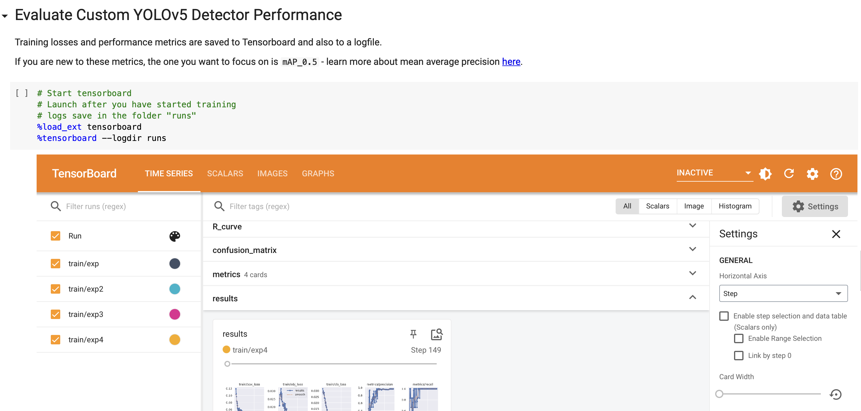 해당 colab에서는 detector의 성능을 평가할 수 있는 tensorboard 화면도 제공하고 있네요!