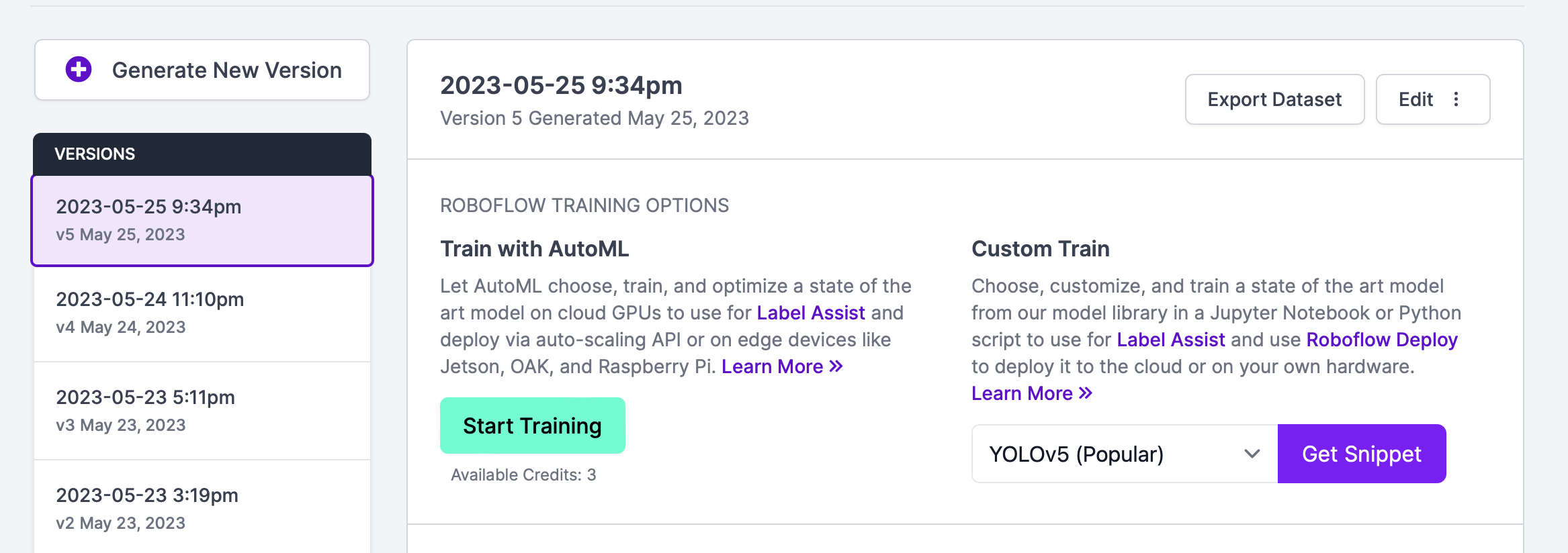 이때 roboflow에 Train, Valid, Test 셋이 모두 있는지 확인해야 합니다