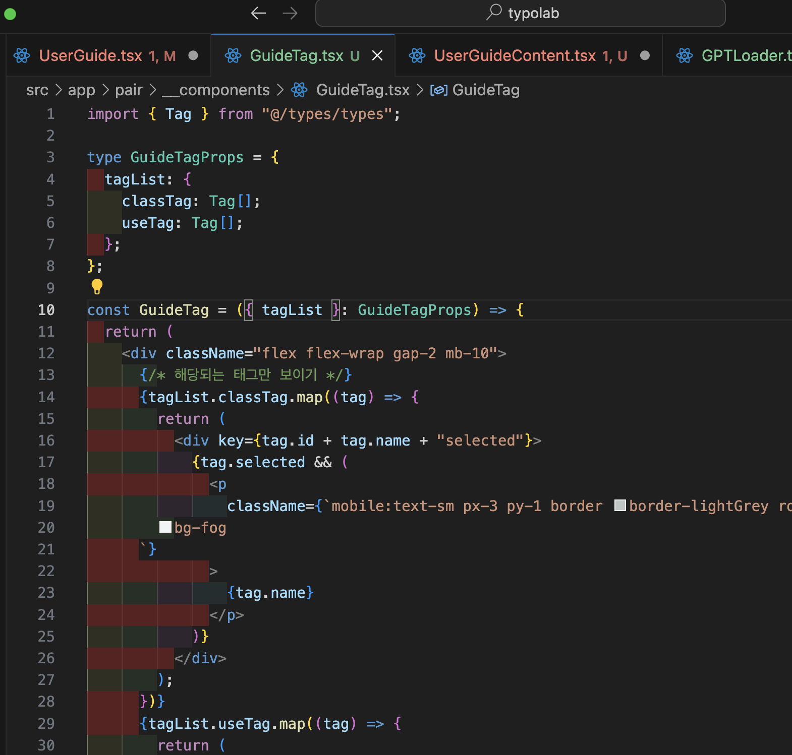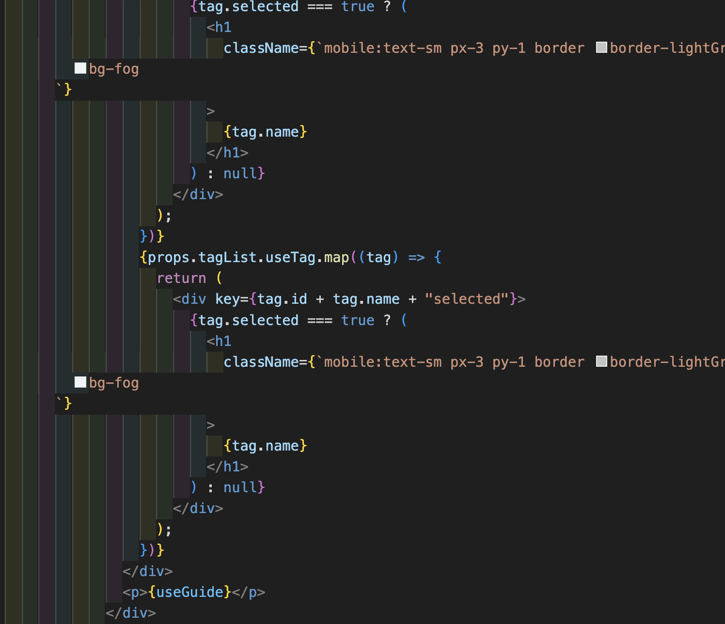 그리고 태그 부분이 map 으로 도는데 h1 태그로 되어 있어 의미가 맞지 않으므로 p 태그로 교체했다.