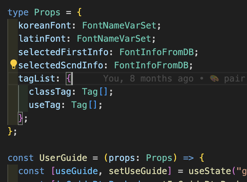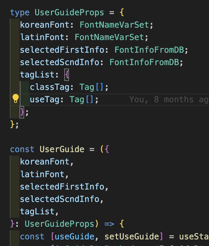 컨벤션의 문제이기는 하지만.. 타입 이름에 페이지명을 포함시켜줬고 구조분해할당을 시켜준 후 모든 props. 를 제거했다.