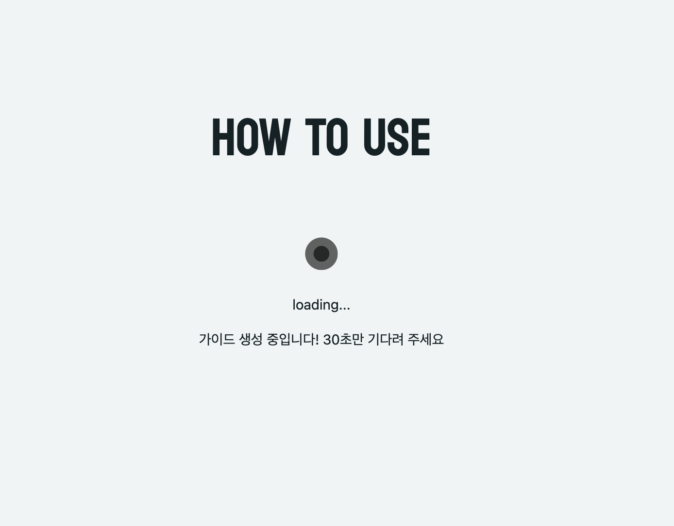 VIEW GUIDE 버튼을 누르면 로딩 이미지가 뜨고, 로딩이 완료되면 지피티가 만들어준 설명이 렌더링된다