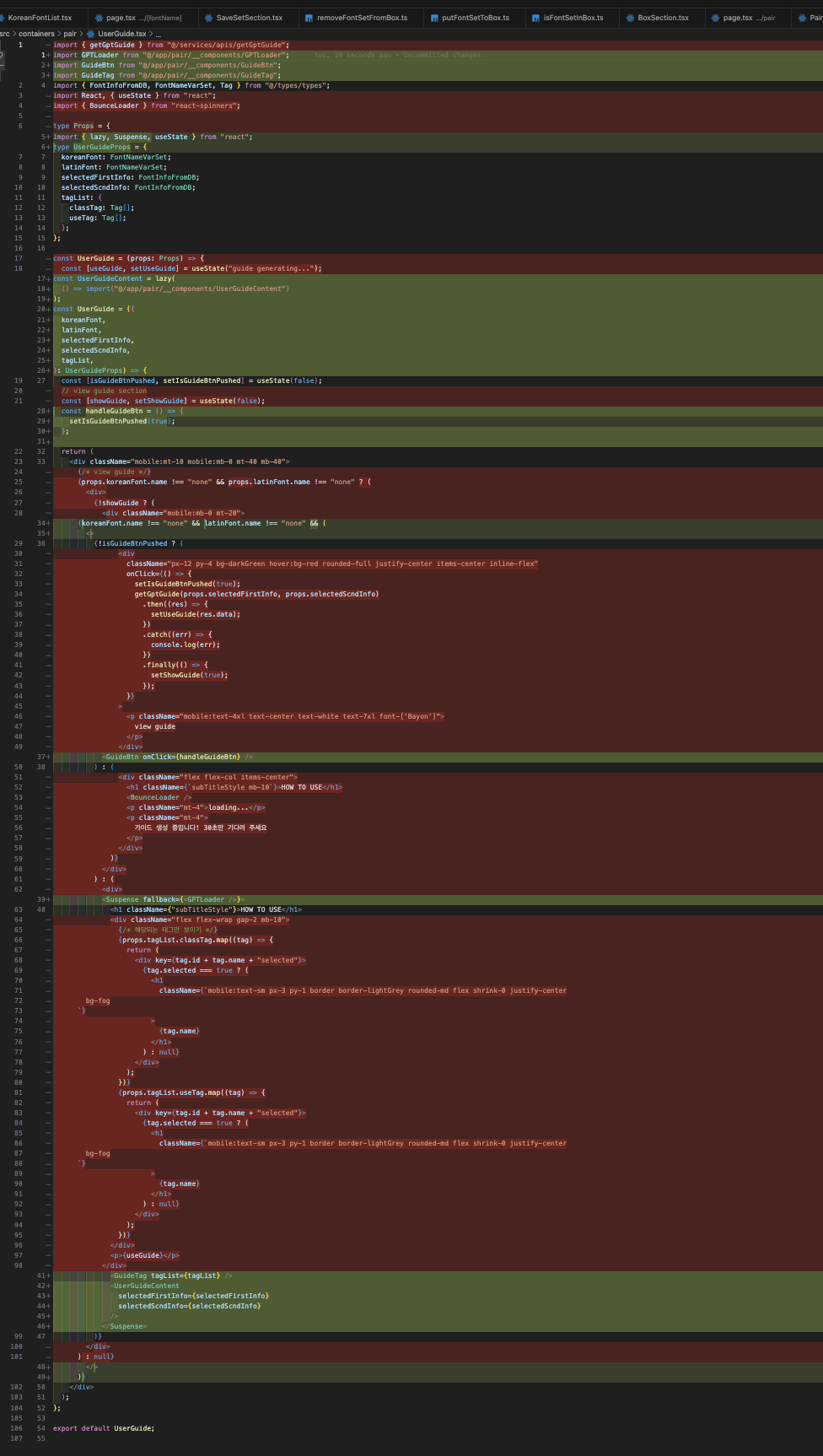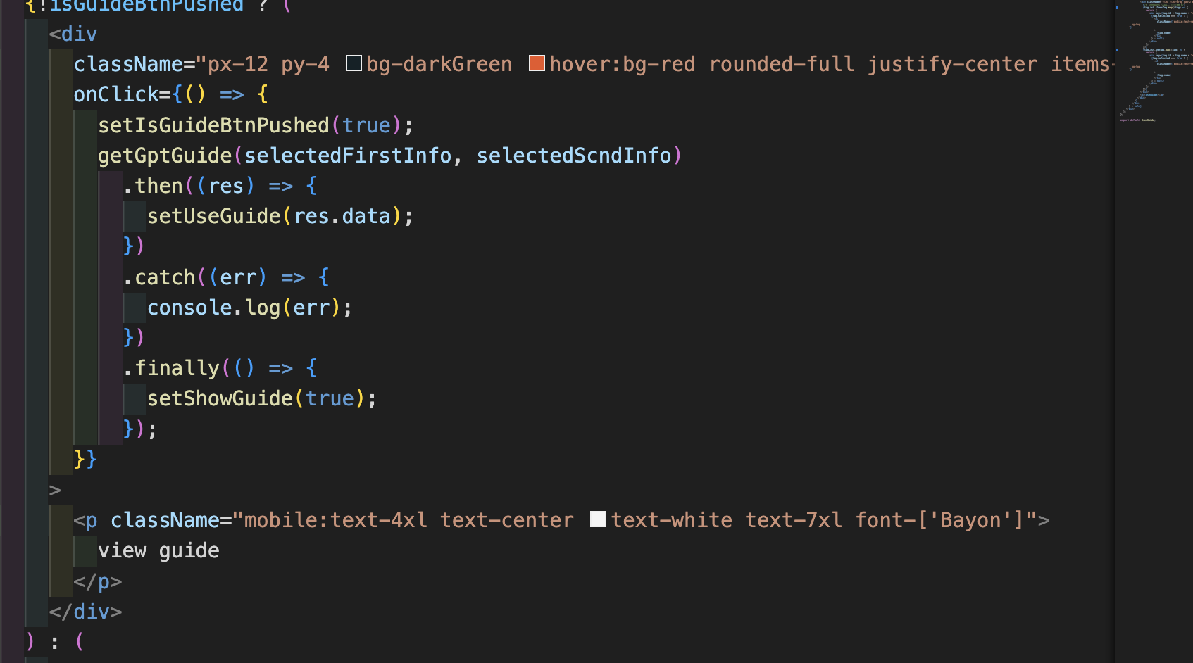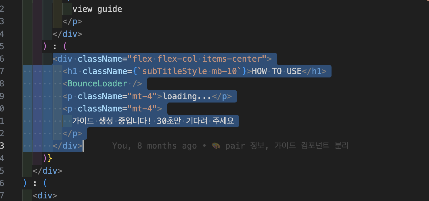 또 gpt 생성하는 시간이 꽤나 길었는지 버튼이 눌렸는지 상태, 가이드 보여줄지에 대한 상태를 분리해서 관리하고 있다.