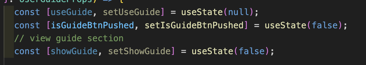 아직 showGuide 와 isGuideBtnPushed 상태로 관리하고 있는 모양이다.