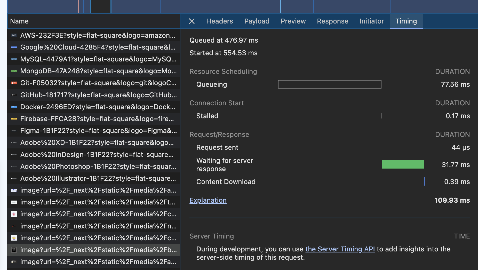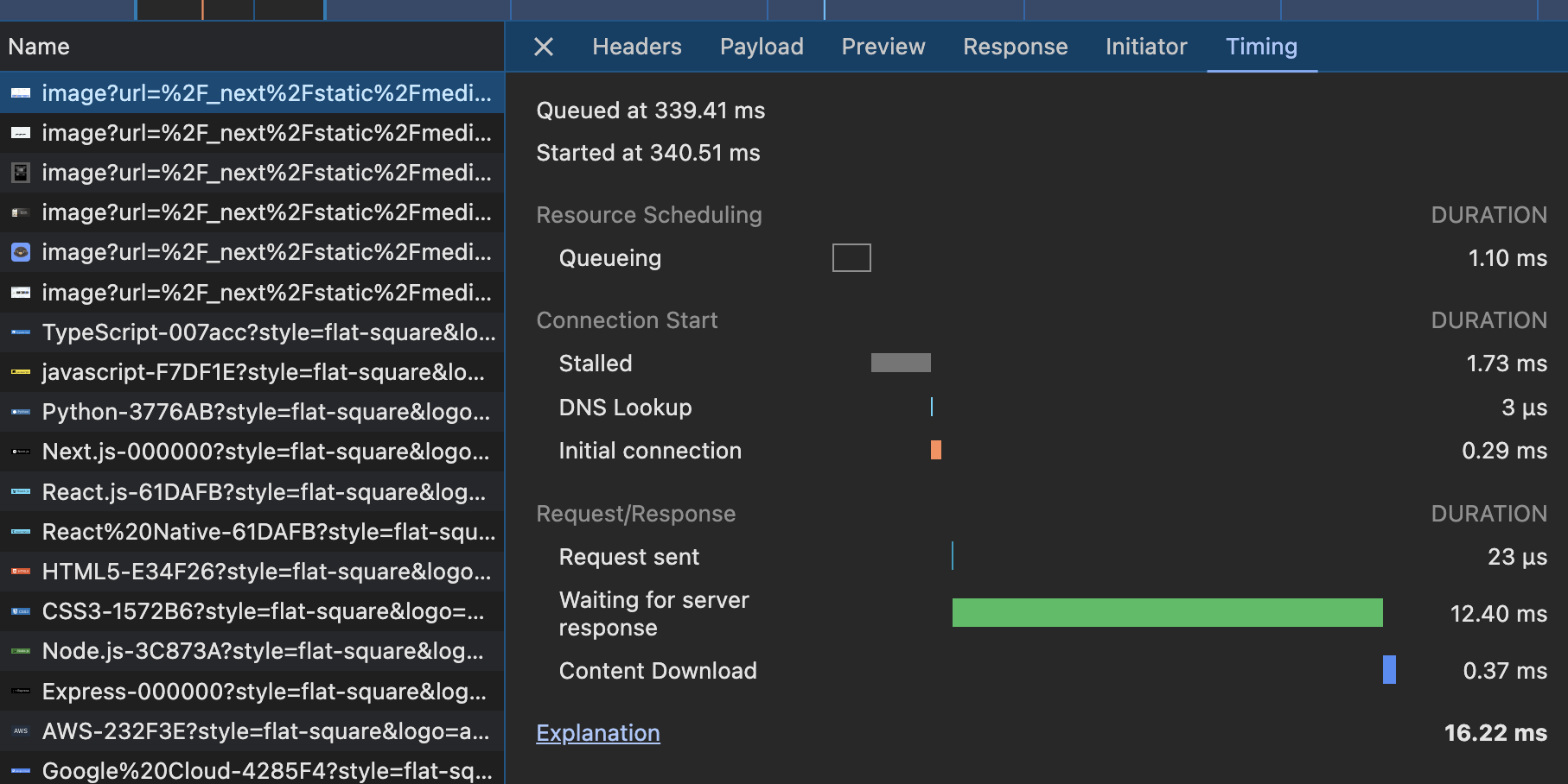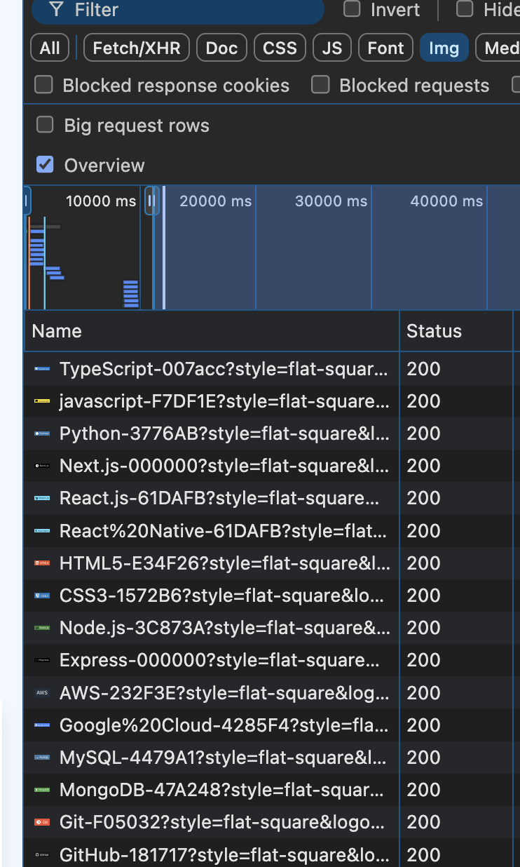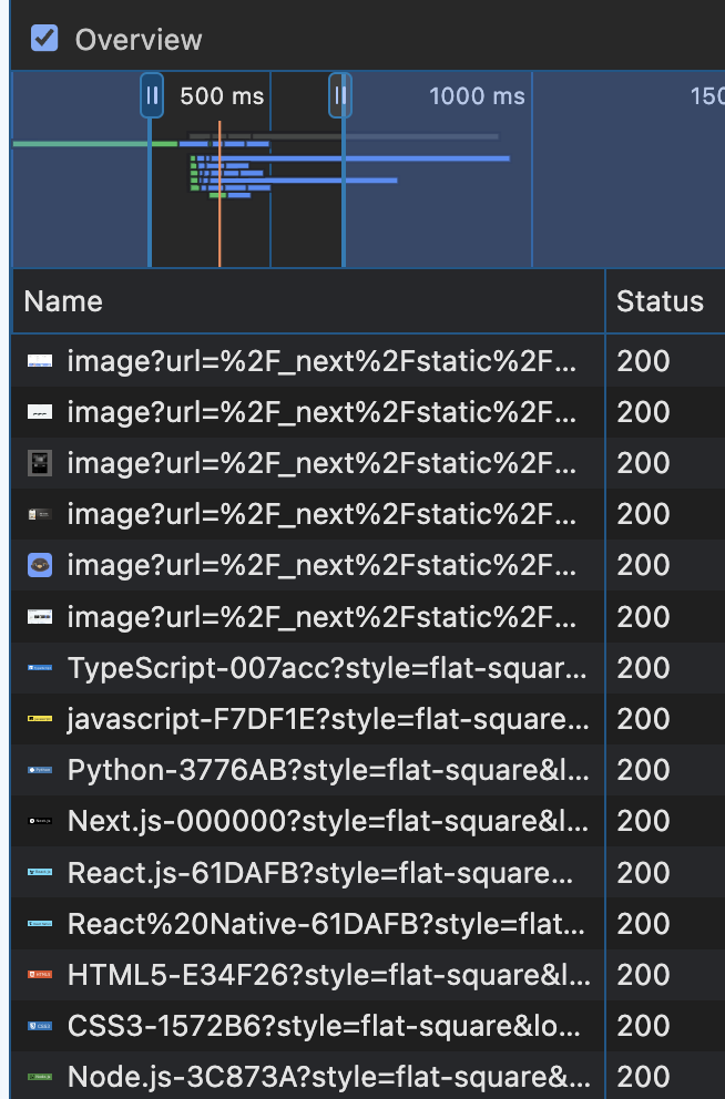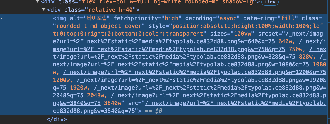 Image 태그에 이미 priority 속성이 붙어 있었다. 이걸 제거하면 훨씬 느려지게 되는 걸까? (사실 next의 Image 컴포넌트는 이미 최적화에 상당히 공을 들였다. 크기별 소스를 생성해주기도 하고, 네트워크 탭을 확인해보면 속도가 빠른 webp 형식으로 받아오는 것을 볼 수 있다.)