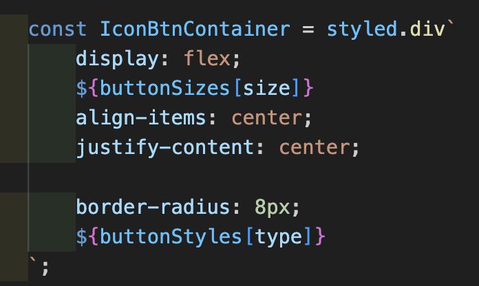 일단 선, 기본배경색, 호버시배경색, 눌렸을 때 색, 보더 유무 정도를 받아서 css 를 돌려주는 함수를 만들어, solid, normal, outlined 일때 각각 다른 css 를 받도록 했다.